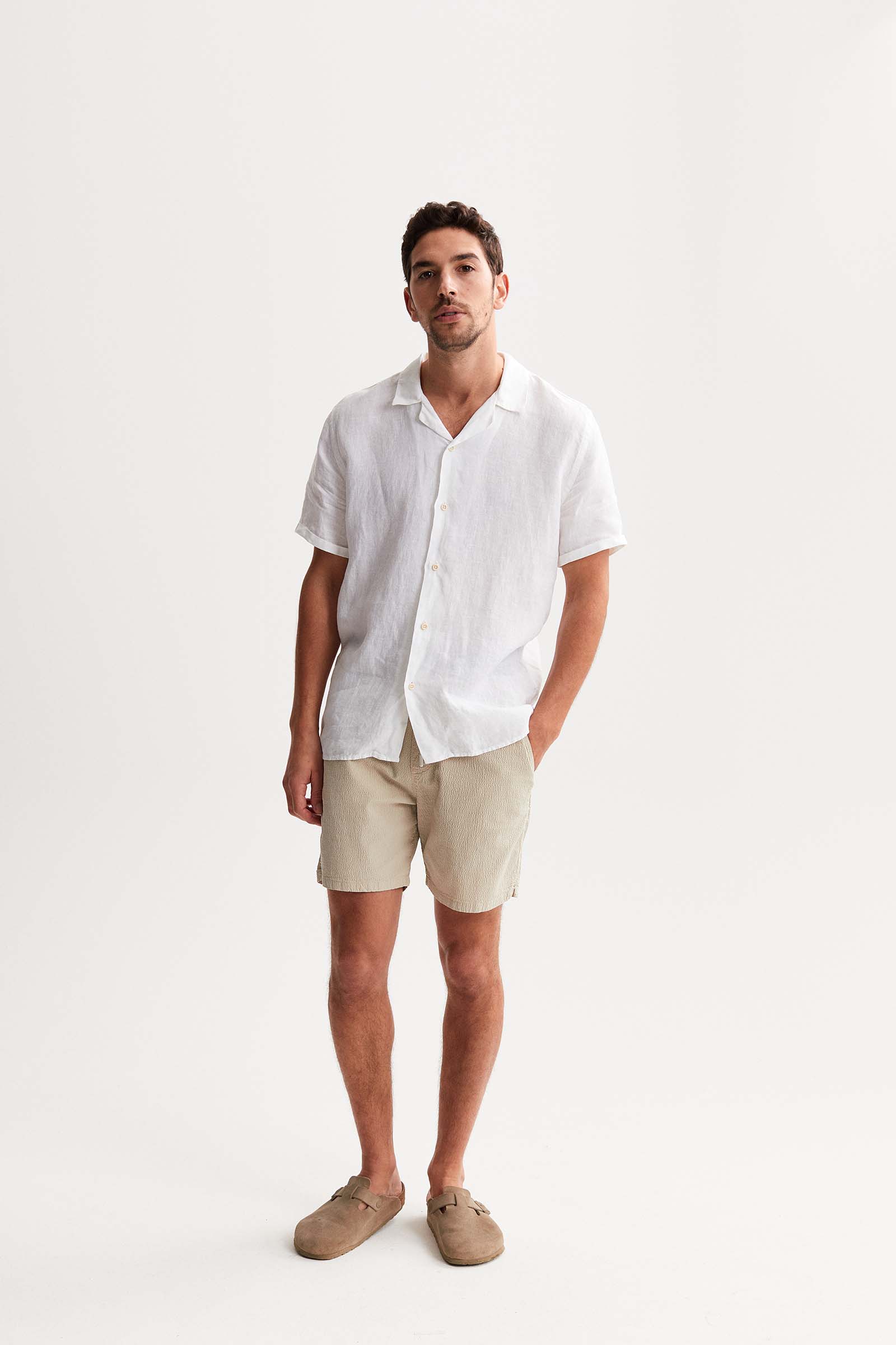 Dit shirt is de SUN. Het shirt wordt gekenmerkt door korte mouwen en een klassiek bowling kraag, geschikt voor elke gelegenheid. Daarnaast is het shirt gemaakt van linnen, een materiaal dat minder water vereist dan andere materialen. Dit maakt het een duurzamer materiaal dan anderen.