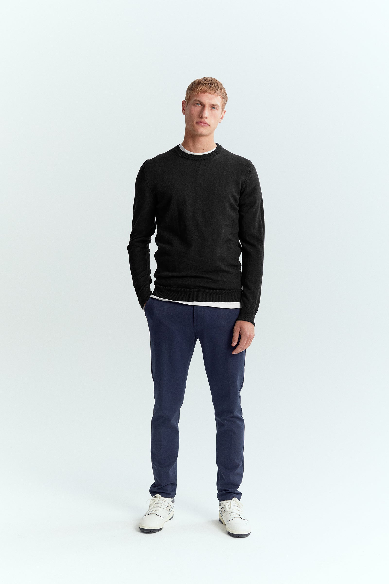 The Essential Merino Knit is made out of 100% Italian merino wool. The knit has everything you need - a comfortable fit, high-quality fibers, and a timeless design.