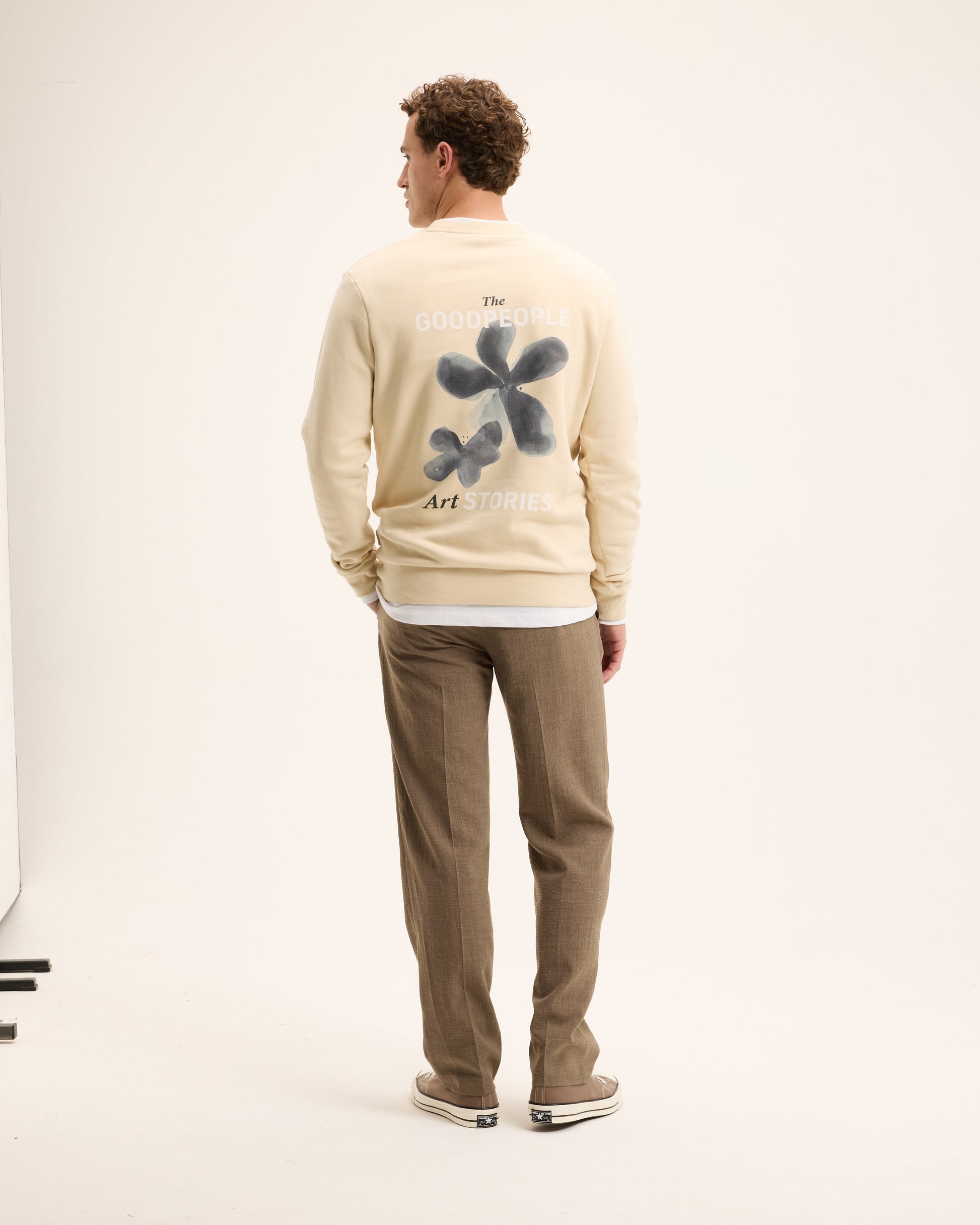 Made from 100% organic cotton, this sweater feels incredibly soft and cozy thanks to its semi-brushed inside. The outside has a sleek, smooth finish with a subtle carbon-like texture that gives it a polished look. Featuring a standout artwork on the back, it’s designed to keep things minimal in the front, and make a statement from behind.