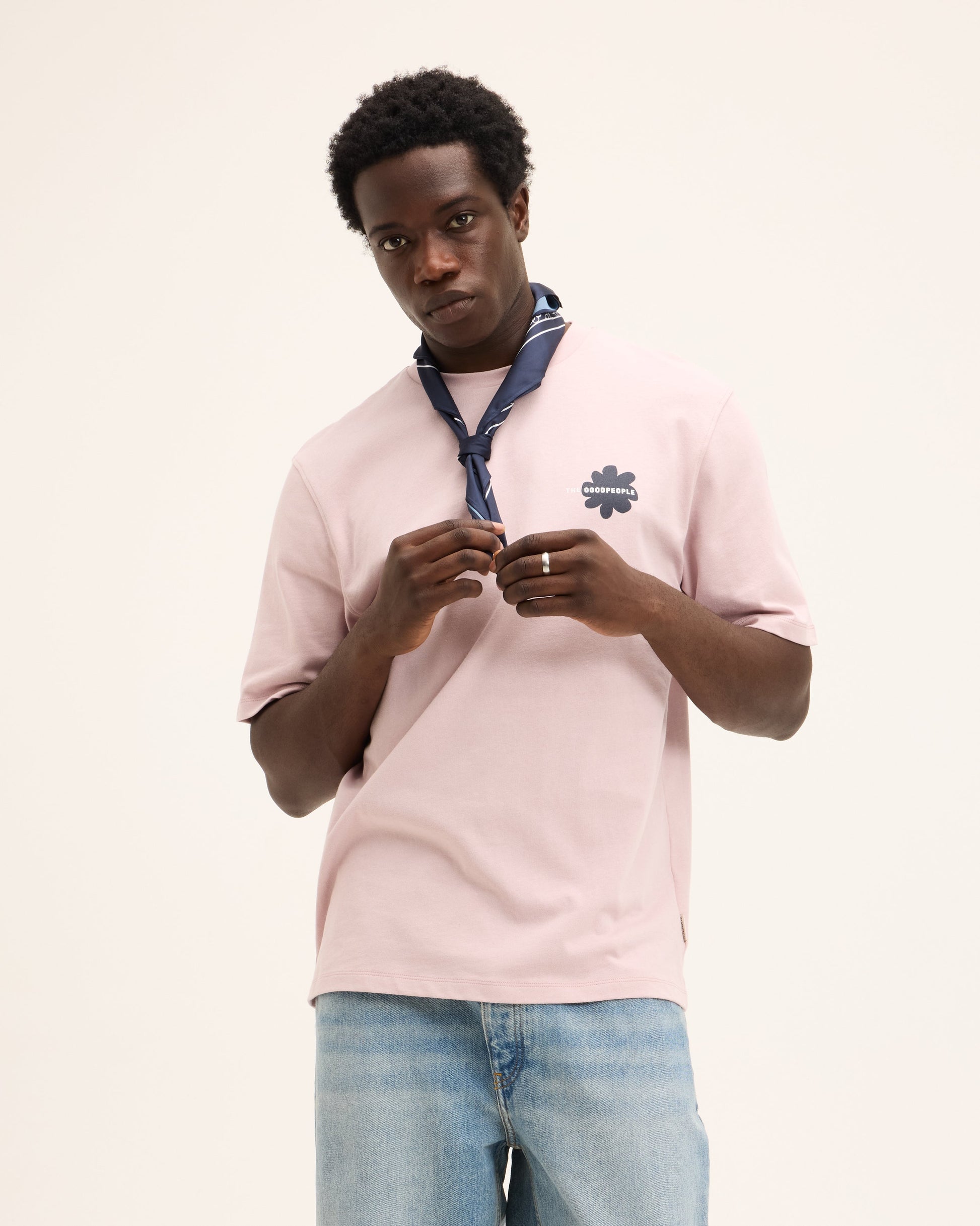 The Tobias Tee has a clean front with a small floral detail on the chest and a bold graphic backprint. The contrast in scale and placement gives the shirt its character, revealing the artwork mainly from the back. Finished with a regular fit that wears easy throughout the day.